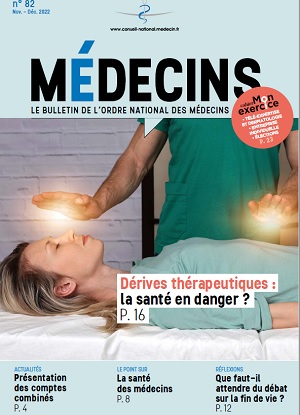 Bulletins de l'Ordre des médecins Imprimer Partager Facebook Twitter Messenger Whatsapp Médecins n°82 Dernière mise à jour le : 13/12/2022 Temps de lecture : 1 mn Lire le bulletin de l'Ordre des médecins de novembre-décembre Notamment au sommaire :L’éditorial du présidentLa présentation des comptes combinésLe point sur la santé des médecinsFin de vie : quelle législation chez nos voisins européens ?Que faut-il attendre du débat sur la fin de vie ?Dossier « les dérives thérapeutiques : la santé en danger ? »Pénurie d'amoxicillineLa télémédecine est avant tout une innovation organisationnelleL'entreprise individuelle : focus sur un nouveau statutTraitement des données par les CPTS : quelles formalités préalables ?Utilisation unique d'un agenda en ligne : est-ce suffisant ?Appel à candidatures :Elections complémentaires dans les Conseil régionaux Grand Est, Ile-de-France, Hauts-de-FranceElection complémentaire à la Chambre disciplinaire nationalePortrait du Dr Claire Mounier-Véhier Lire la version feuilletable télécharger le bulletin au format pdf