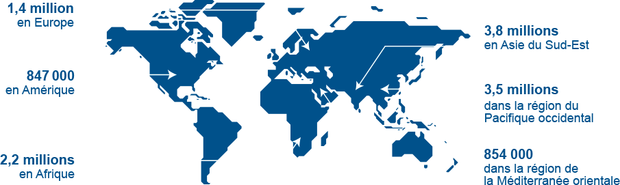 - 1,7 million de décès chez les enfants de moins de 5 ans. En cause, les maladies respiratoires et les diarrhéiques.